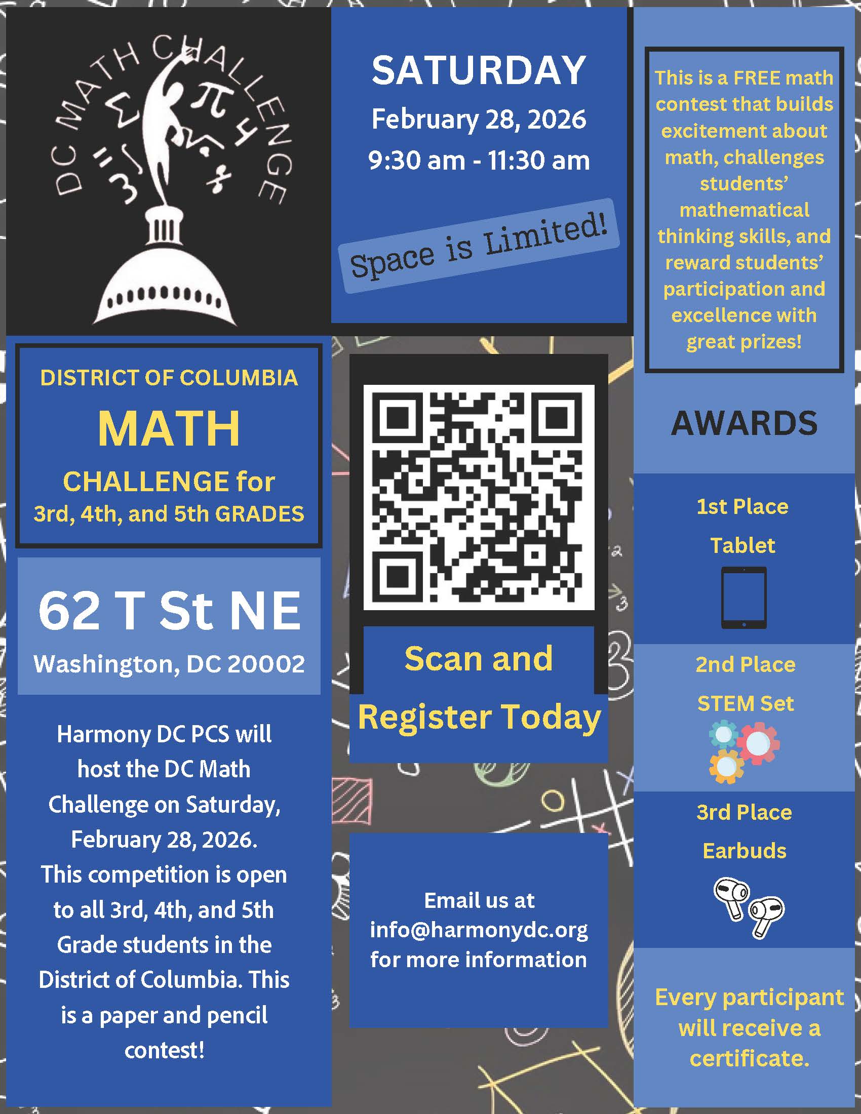 Harmony DC PCS will host the DC Math Challenge on Saturday, February 28, 2026.