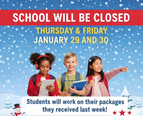 Harmony DC will be closed on Thursday and Friday, January 29 and 30, due to current weather and road conditions. Students should work on the packets they received last week and submit them when school resumes later this week. These packets will…