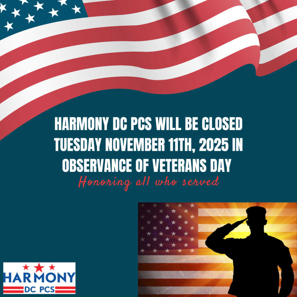 In observance of Veterans Day, there will be no school on Tuesday, November 11. We take this day to honor and thank all the brave men and women who have served our country.